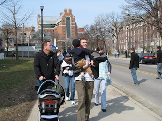 While most people go somewhere exotic for spring break, this year our spring break found us in the lovely state of Ohio. It was not to exotic but it was a lot of fun! We had such a good time being with Blake, Lindsey, Caleb and Spencer. We did many fun things and ate a lot of food!!! We were glad to get to go to their ward and meet some of their friends and fellow students. We took a walk about on campus at Ohio State University, home of the Buckeyes, which is a nut, (in case you don't know), and the highlight of that was a tour of the cadaver lab where Blake gets to cut up dead people and study their innerds. (that was pretty crazy!) We walked though the dental school and saw where he is practicing making crowns and putting in filling, etc. and so far he has scored the highest on most of the work there. Good job Blaker! So it was a great time we had and are looking forward to our next exotic trip to Ohio!